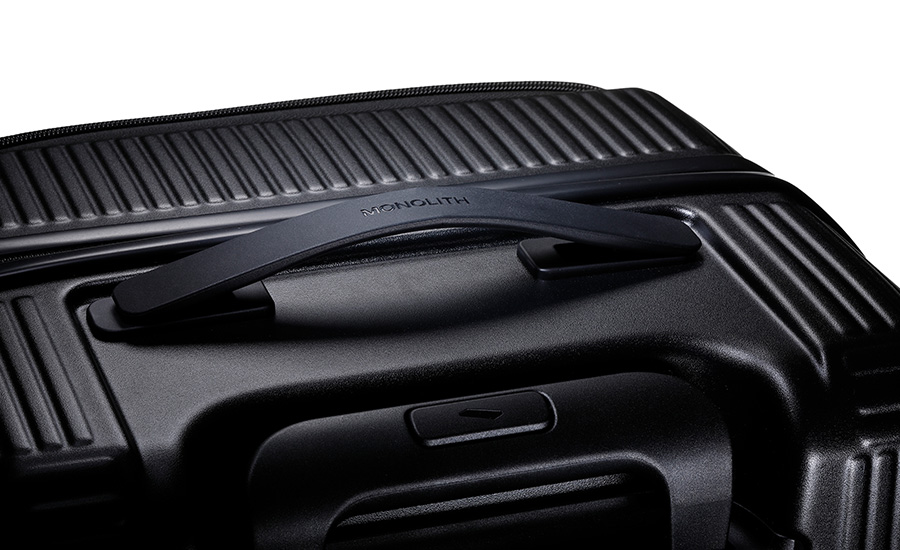 本体トップとサイドにメインハンドルを設置。ハンドルとして使用しない時は、荷物を乗せる際などに干渉しない凹みに収納されるフラットな設計。