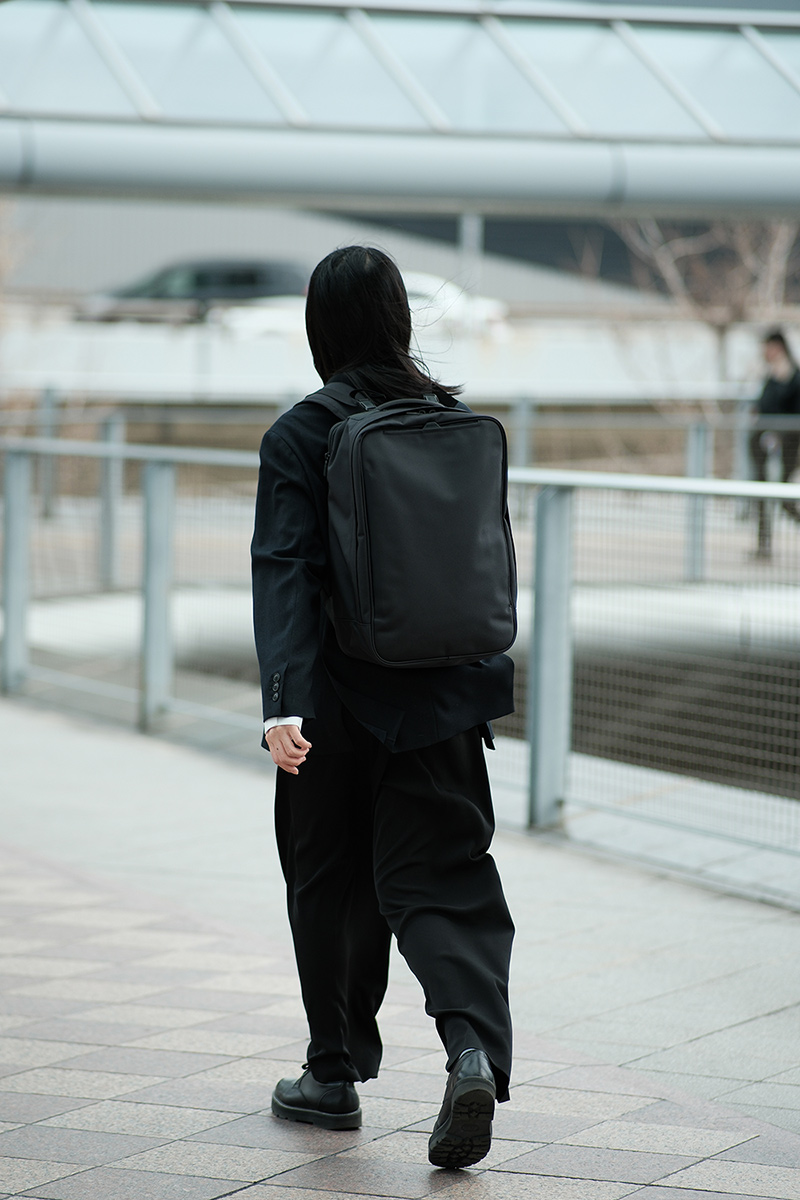 シンプルなデザインでシーンやスタイルを選ばない汎用性。ガジェットを駆使するユーザーのニーズに応える機能性。そして、カジュアルな装いでも印象を引き締めてくれる直線的なシルエット。スクエア型バッグの強みはここにあります。